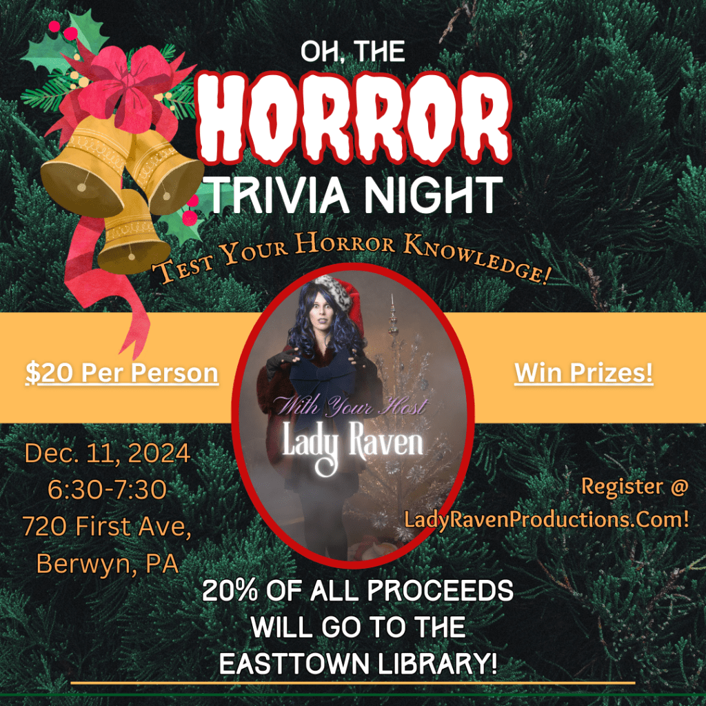 Sign up here: https://www.eventbrite.com/e/oh-the-horror-trivia-night-registration-1084328017289?aff=oddtdtcreator